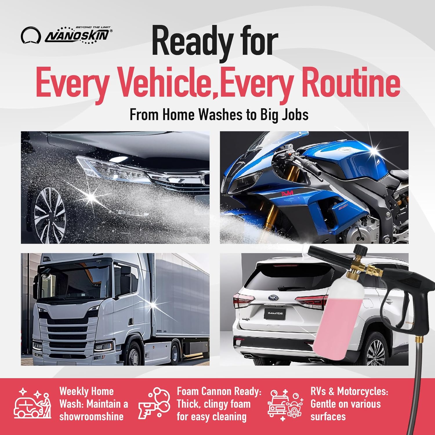Nanoskin CHERRY SUDS Foaming Car Wash Shampoo 55 Gallons- Works with Foam Cannon, Foam Gun, Bucket Washes, Car Soap for Pressure Washer | Safe for Cars Trucks, Motorcycles, RVs & More | Cherry Scented