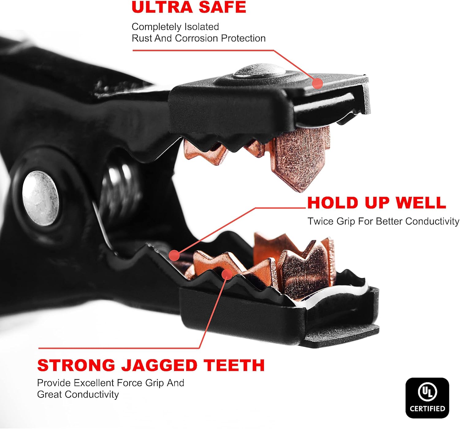 - Unique Design Strong Clamps - Industrial polypropylene made cover protects jaws from impacts (Unique Design), Also patented design clamps covered with non-conducting rubber, which make AWELTEC jumper cables more safe and durable for repeatedly use.