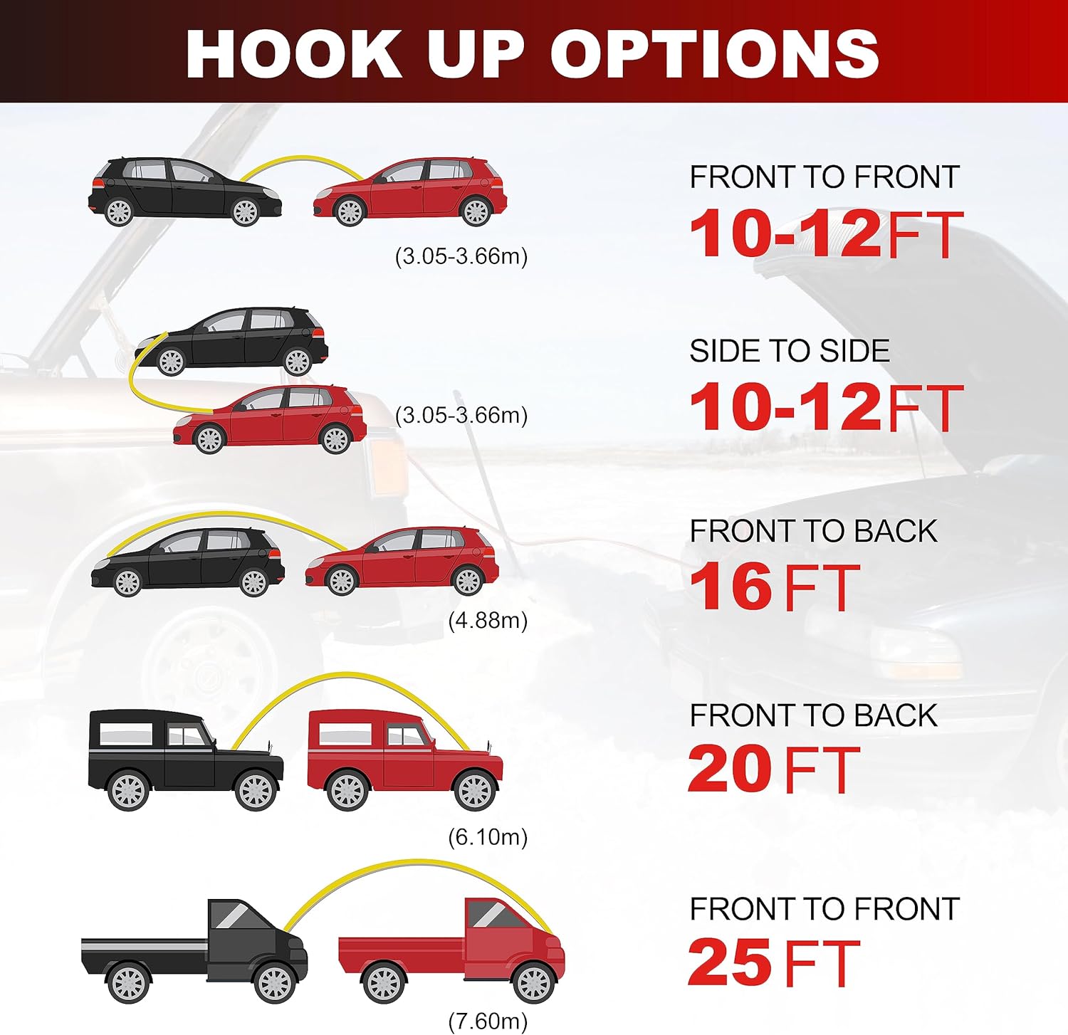 - AWELTEC 12 Foot length makes it easy to reach from one car battery to another, Unique Design clamps suitable for various cars and connection ways.