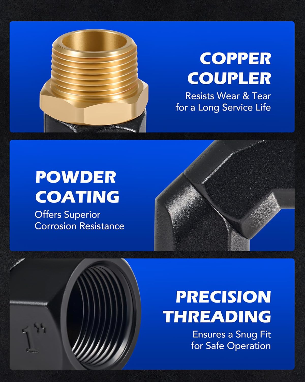 - CORROSION PROOF BUILD: Our fuel hose connector set's sturdy zinc alloy and copper construction ensures years of corrosion resistance, ideal for transferring gasoline, diesel oil, kerosene, and more