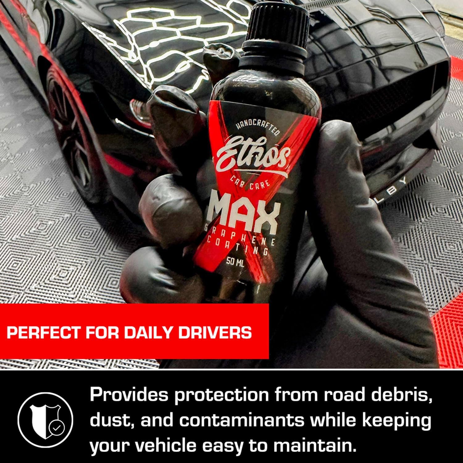 - ADDITIONAL ADDITIVES FOR INCREASED PERFORMANCE -- Take your protection to the MAX with our ALL NEW, industry-leading Graphene Coating. Ethos Graphene Coatings provide incredible protection from road debris, dust and contaminants while keeping your vehicle extremely easy to maintain.