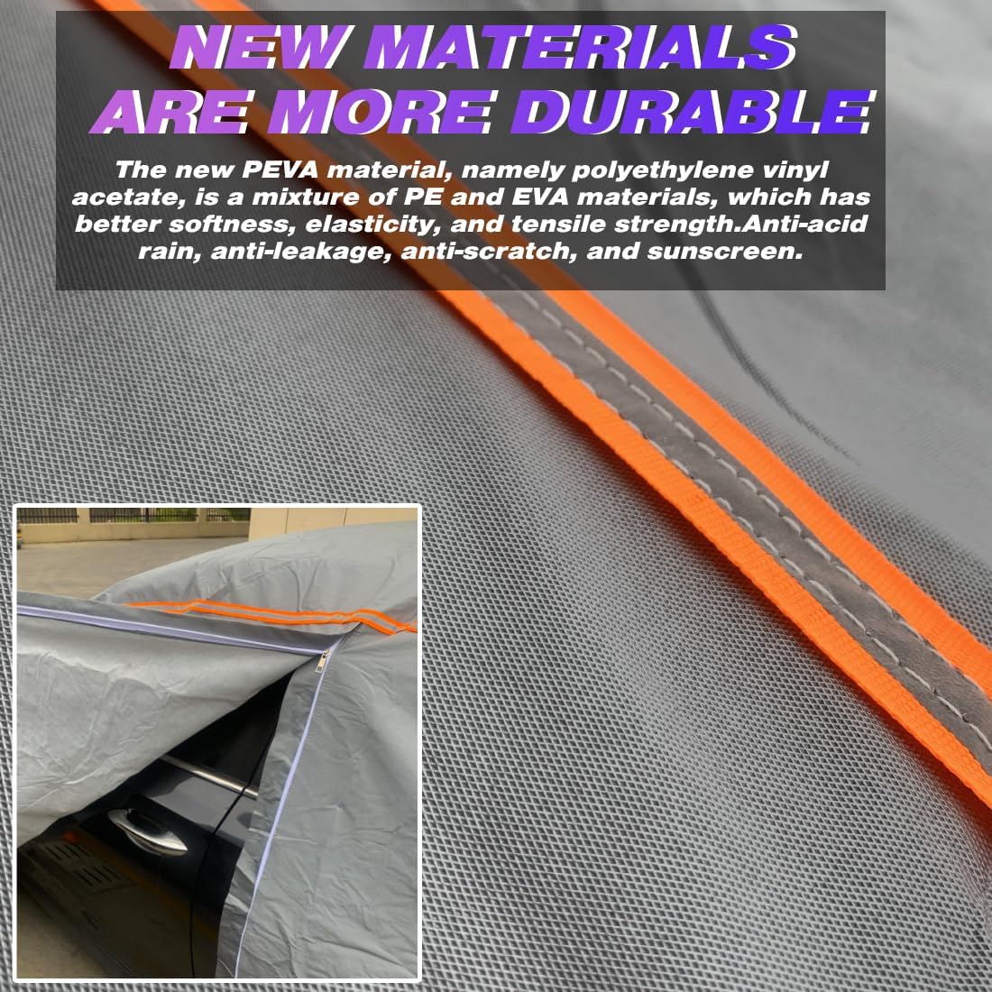 - 【HIGH-QUALITY MATERIAL】- KEYOOG Uses PEVA cotton full car cover 6 layers of high-quality materials, which is thicker and more durable than other similar 6-layer products. ❶ 100% waterproof, impermeable, very suitable for rain, snow and acid rain. ❷ High reflective material with strong sunscreen and uv resistance to keep the car cool. ❸ Internal high-density spunlaced cotton, softer, no sand, and no damage to the car paint.