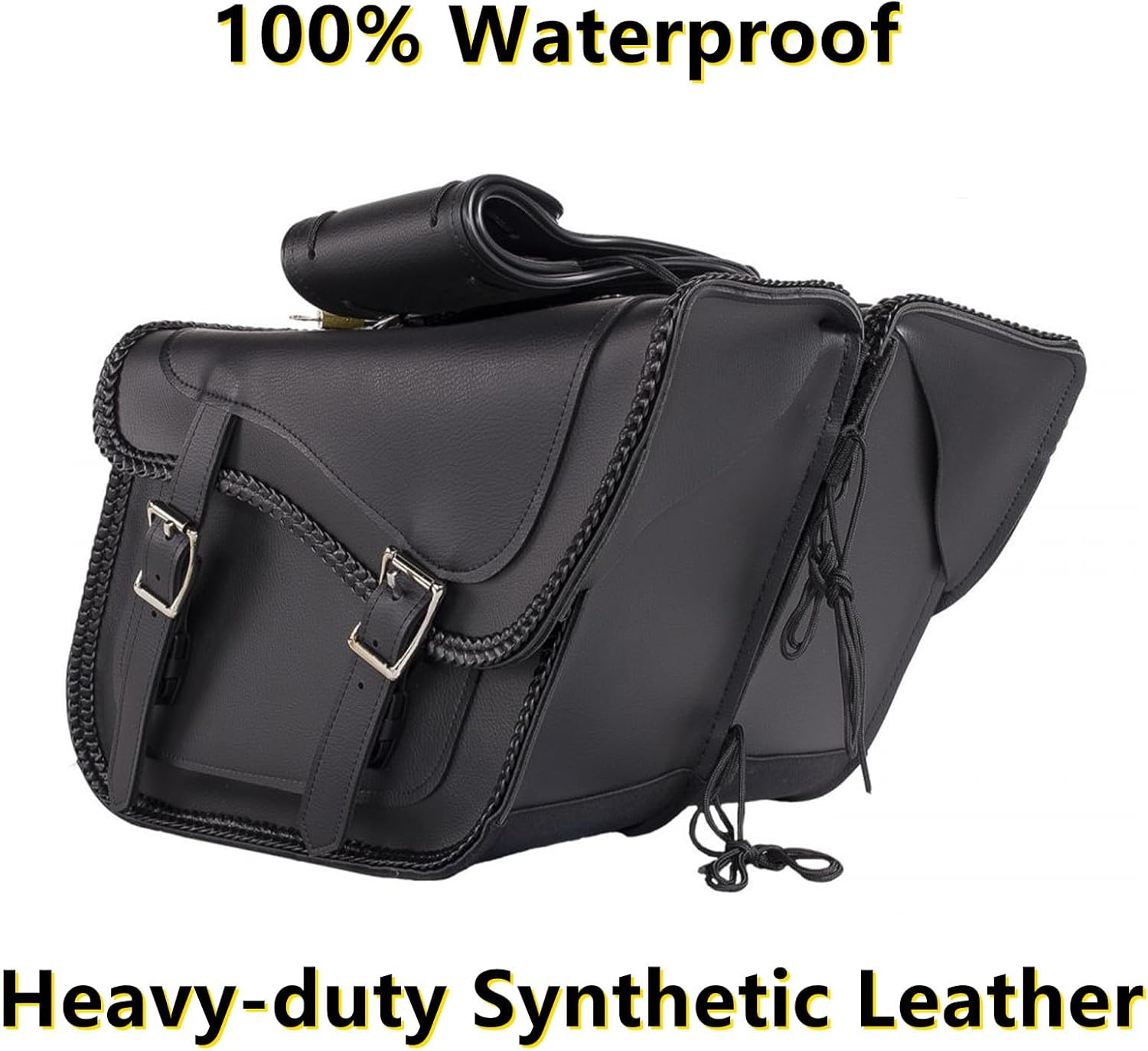 - 【Superior Quality】This motorcycle saddlebags is made up of durable heavy-duty Leather/PVC(100% waterproof). The reinforced sewing and moderate thickness make our motorcycle saddle bag can always keep its shape and longer service life.