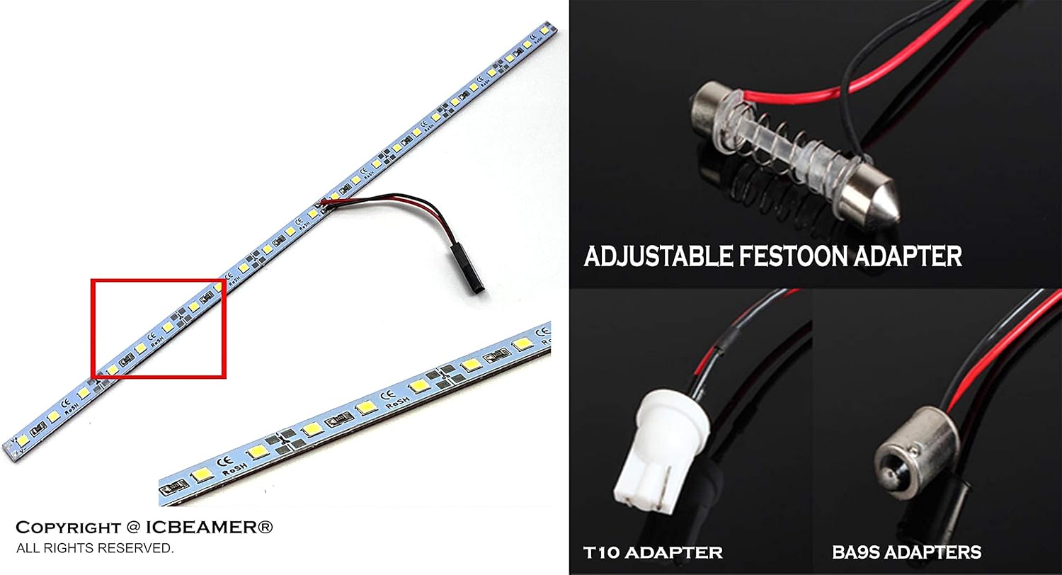 - â Fit Like a Glove: This LED strip comes with (3) versatile bulb fitment adapters and an extension cord, making it the perfect match for nearly any car, SUV, or cargo area OEM lamp socket. No matter your vehicle, we've got you covered!