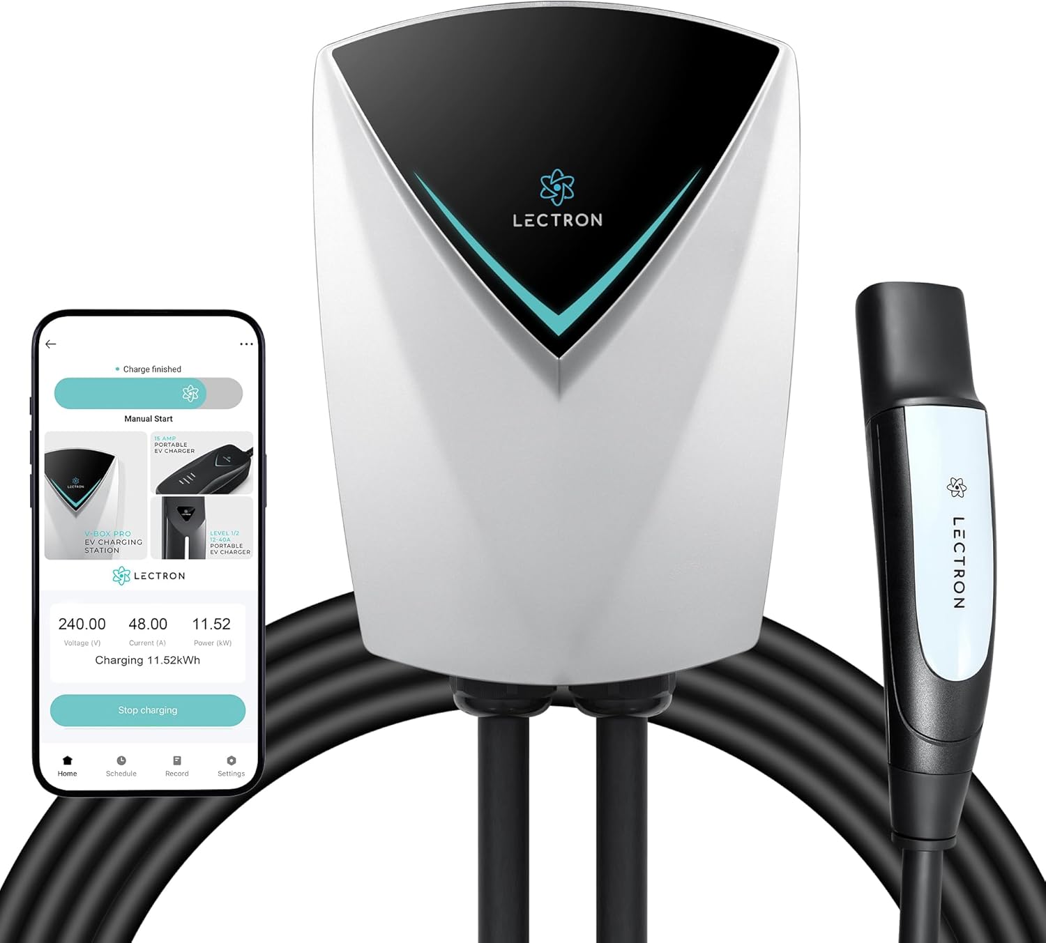 - APP ACCESS - Take control of your charging experience anytime, anywhere with the intuitive Lectron App. Keep tabs on your charging status in real-time, schedule your charging sessions, and even control how many kWh you want to charge your EV.