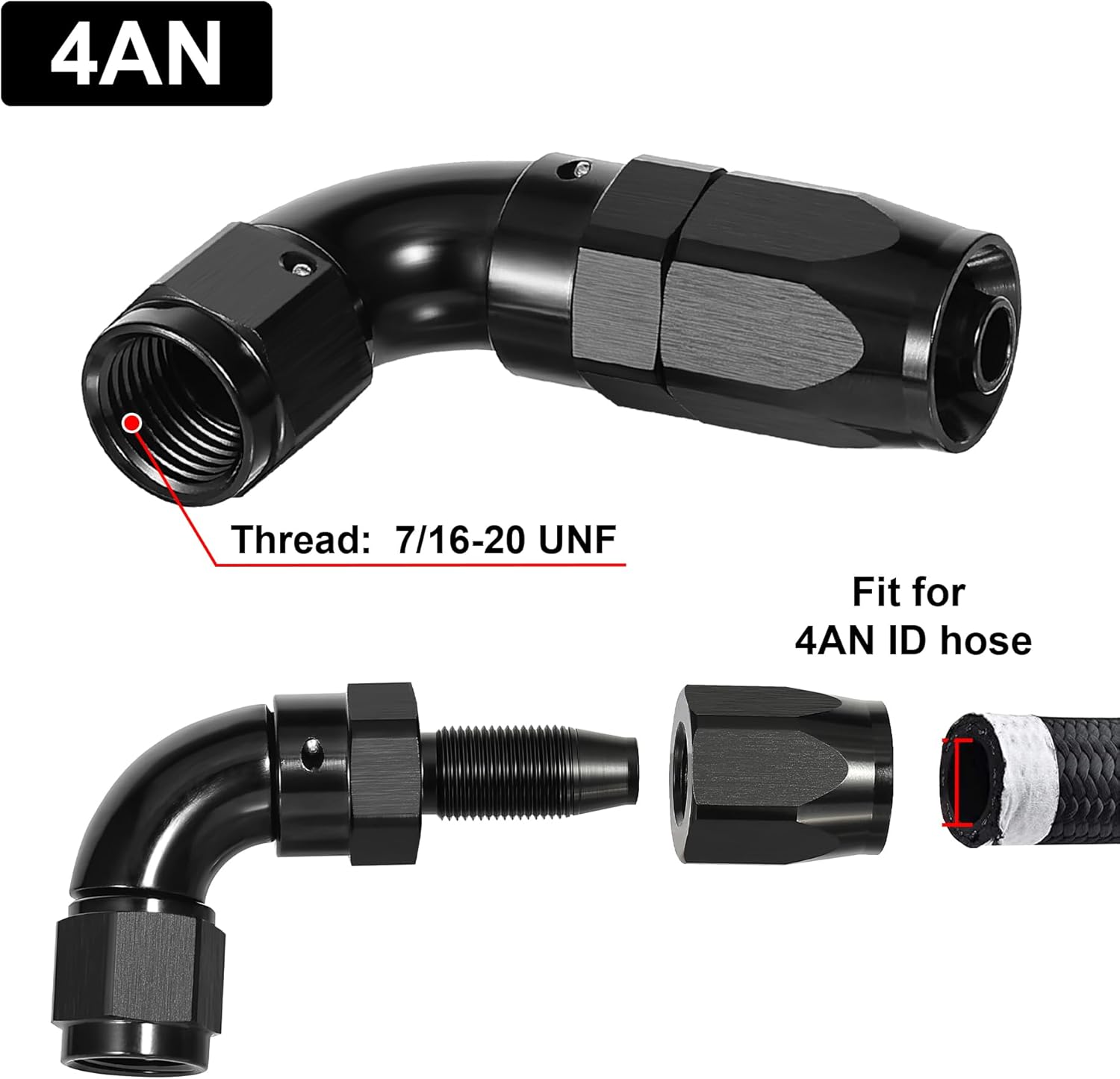 - Size: The thread size of 4AN is 7/16-20 UNF. The AN side is sealed by a 37 degree angle