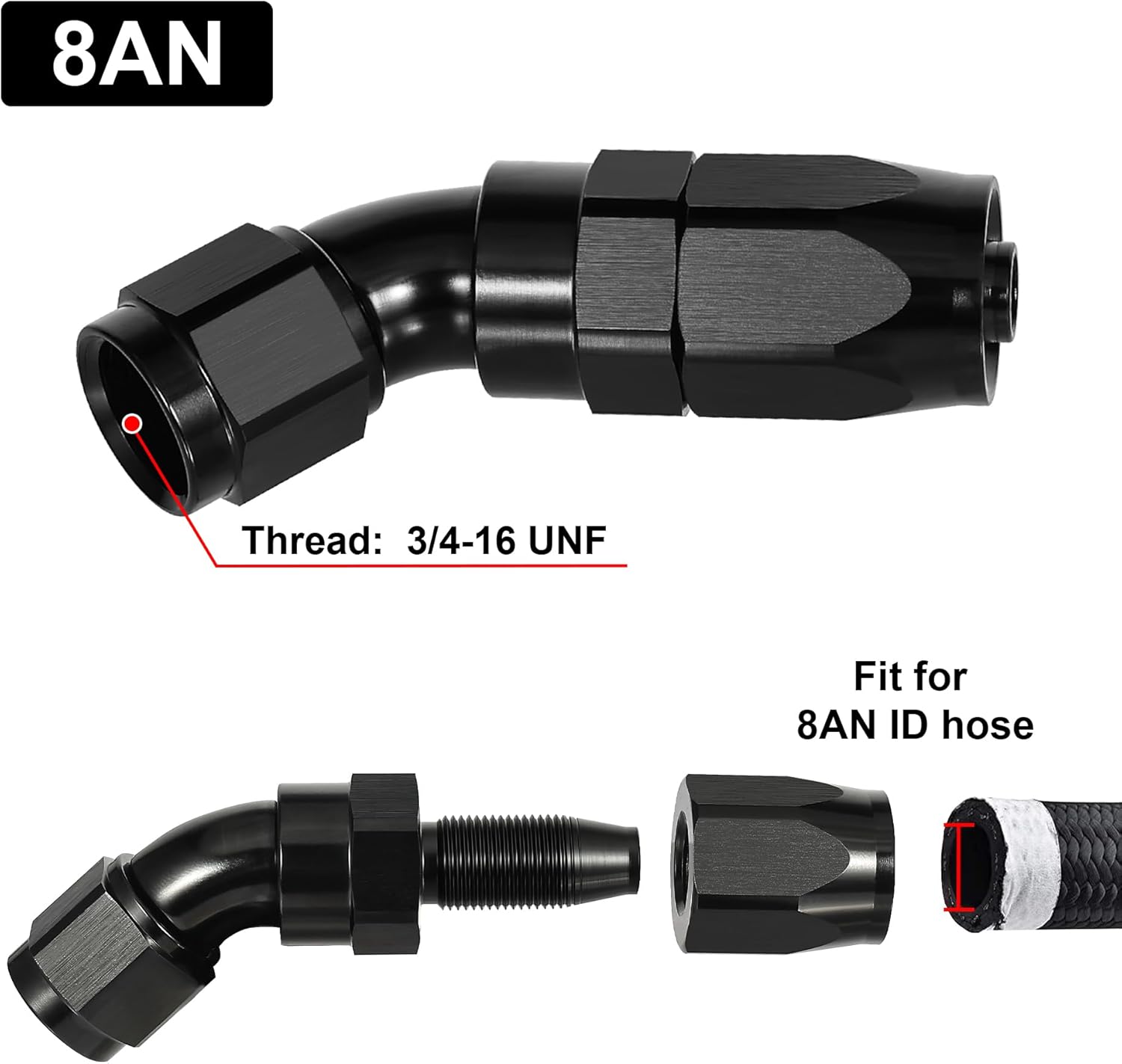 - Application:The AN8 hose end is only work with stainless braided and nylon braided hose .