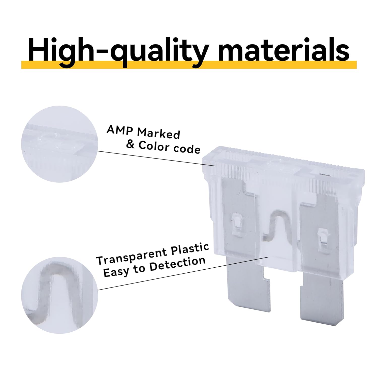 - CONVENIENT DETECTION - The plug-in blade fuses are made from transparent PES with zinc alloy inserts and transparent housings for viewing the fuse link status and quick detection of a blown fuse.