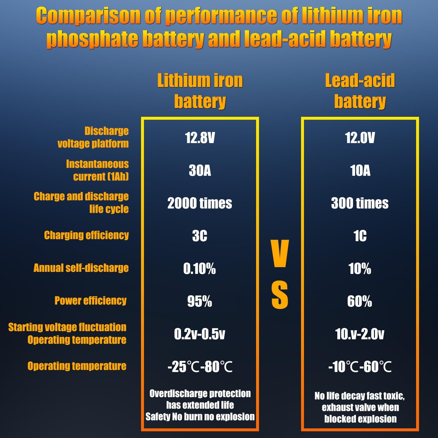 - 【Superior Safety Performance, Worry-Free Driving】LiFePO4 lithium-ion automotive batteries are made with safe and stable lithium iron phosphate material. Equipped with a BMS (Battery Management System) control circuit, they provide significantly enhanced safety performance compared to ordinary lead-acid batteries. They support complex vehicle electronic systems with high power demands, including start/stop functions, ensuring a carefree driving experience.