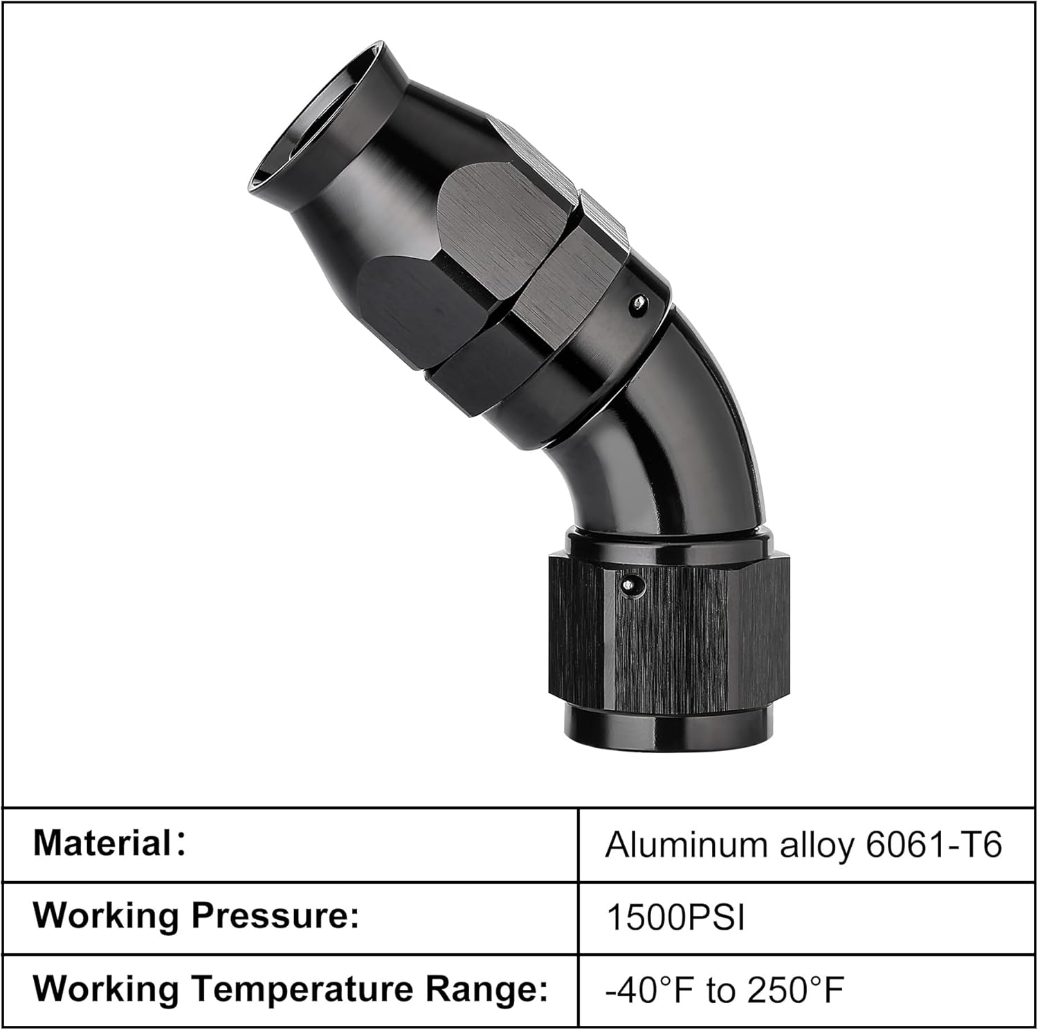- [Product Size & Parameter] Size: 10AN. Thread Size: 7/8-14 UNF. Working Pressure: 1500PSI. Working Temperature Range: -40Β°F-250Β°F. Angle: 60 Degrees. Note: Please verify the hose size before purchase.