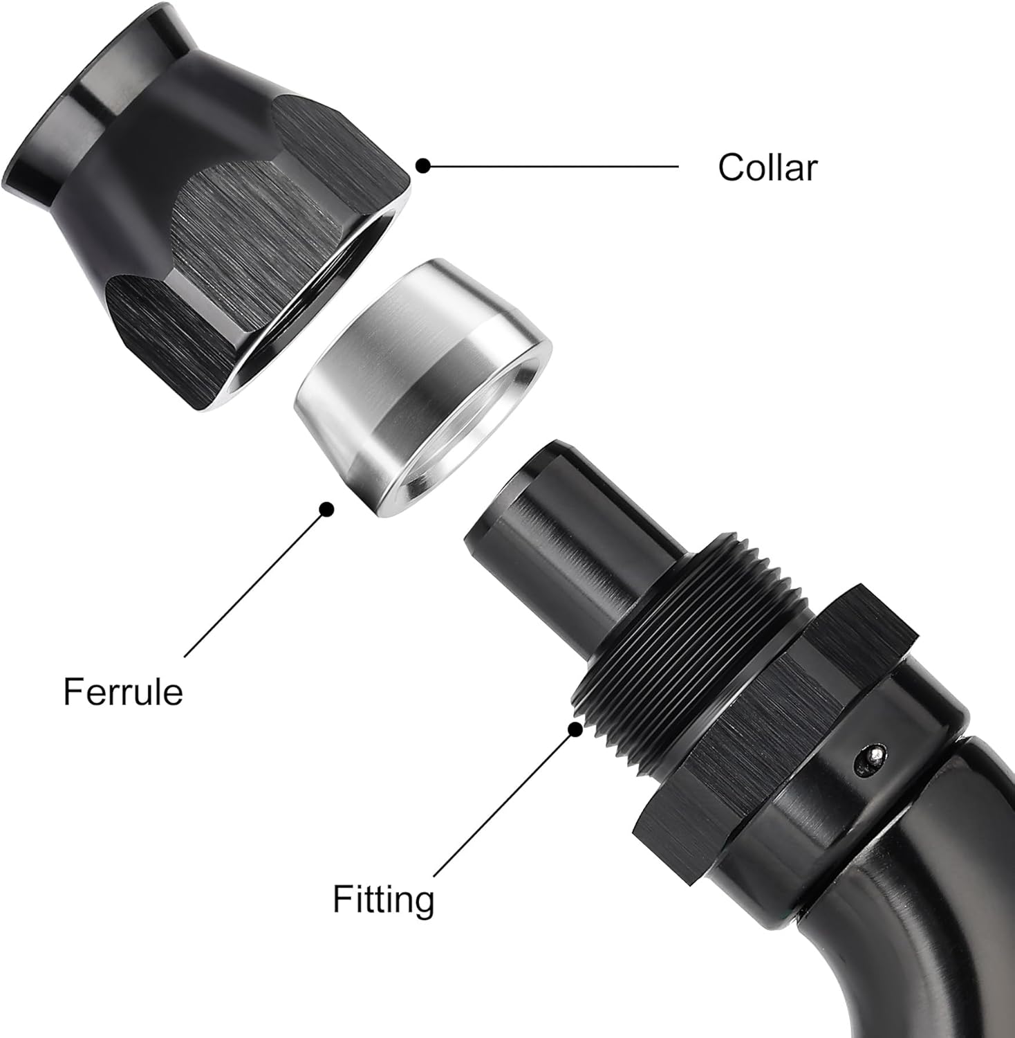 - [Application] These fittings are ONLY used with PTFE fuel lines for E85, alcohol, nitro, clutch, nitrous, power steering, oiling, hydraulics, and vacuum applications. A 360Β° swivel design allows for easy assembly.