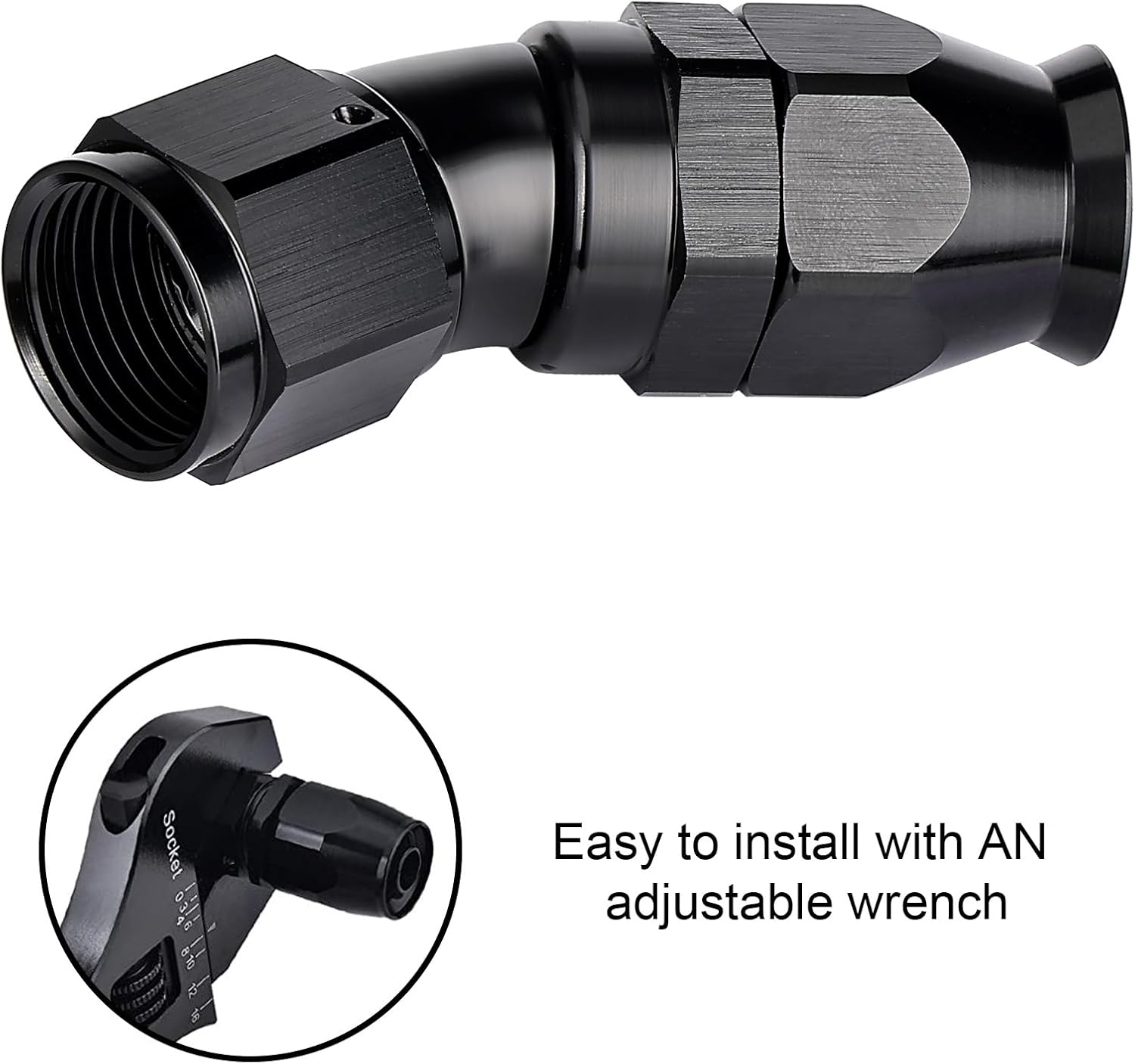 - [Application] These fittings are ONLY used with PTFE fuel lines for E85, alcohol, nitro, clutch, nitrous, power steering, oiling, hydraulics, and vacuum applications. A 360Β° swivel design allows for easy assembly.