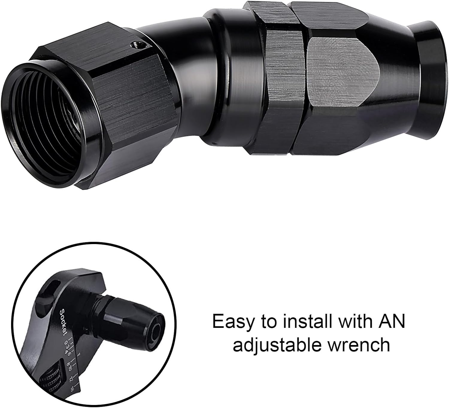 - [Application] These fittings are ONLY used with PTFE fuel lines for E85, alcohol, nitro, clutch, nitrous, power steering, oiling, hydraulics, and vacuum applications. A 360° swivel design allows for easy assembly.