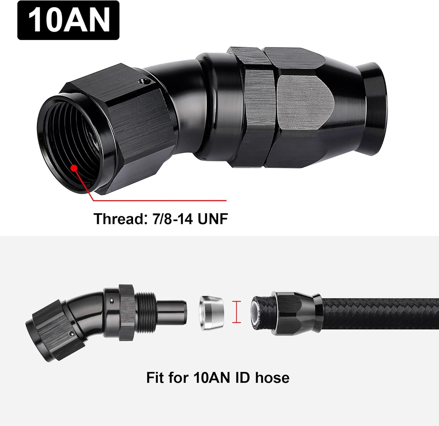 - [Product Size & Parameter] Size: 10AN. Thread Size: 7/8-14 UNF. Working Pressure: 1500PSI. Working Temperature Range: -40Β°F-250Β°F. Angle: 30 Degrees. Note: Please verify the hose size before purchase.