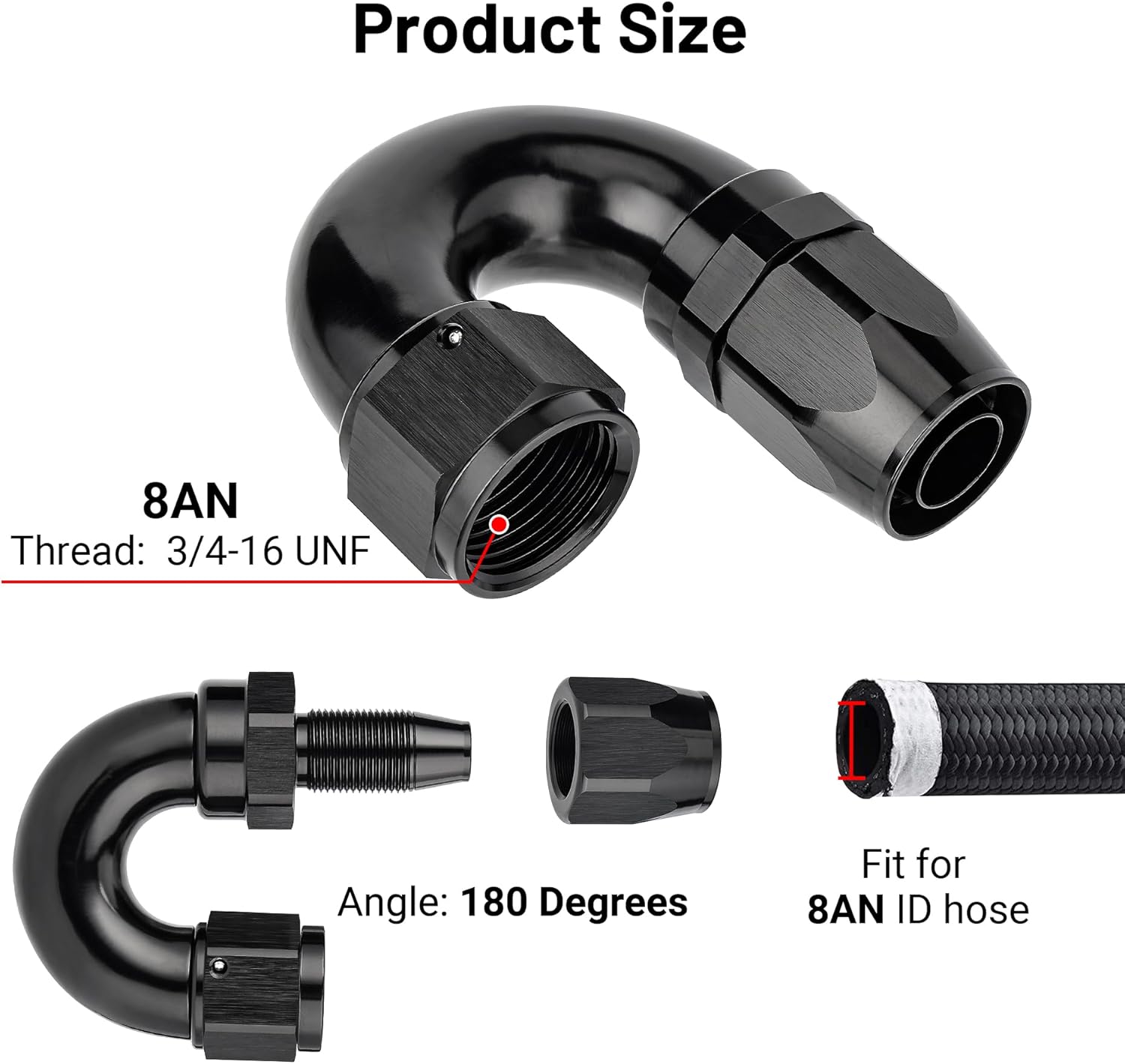 - Application:The AN8 hose end is only work with stainless braided and nylon braided hose .
