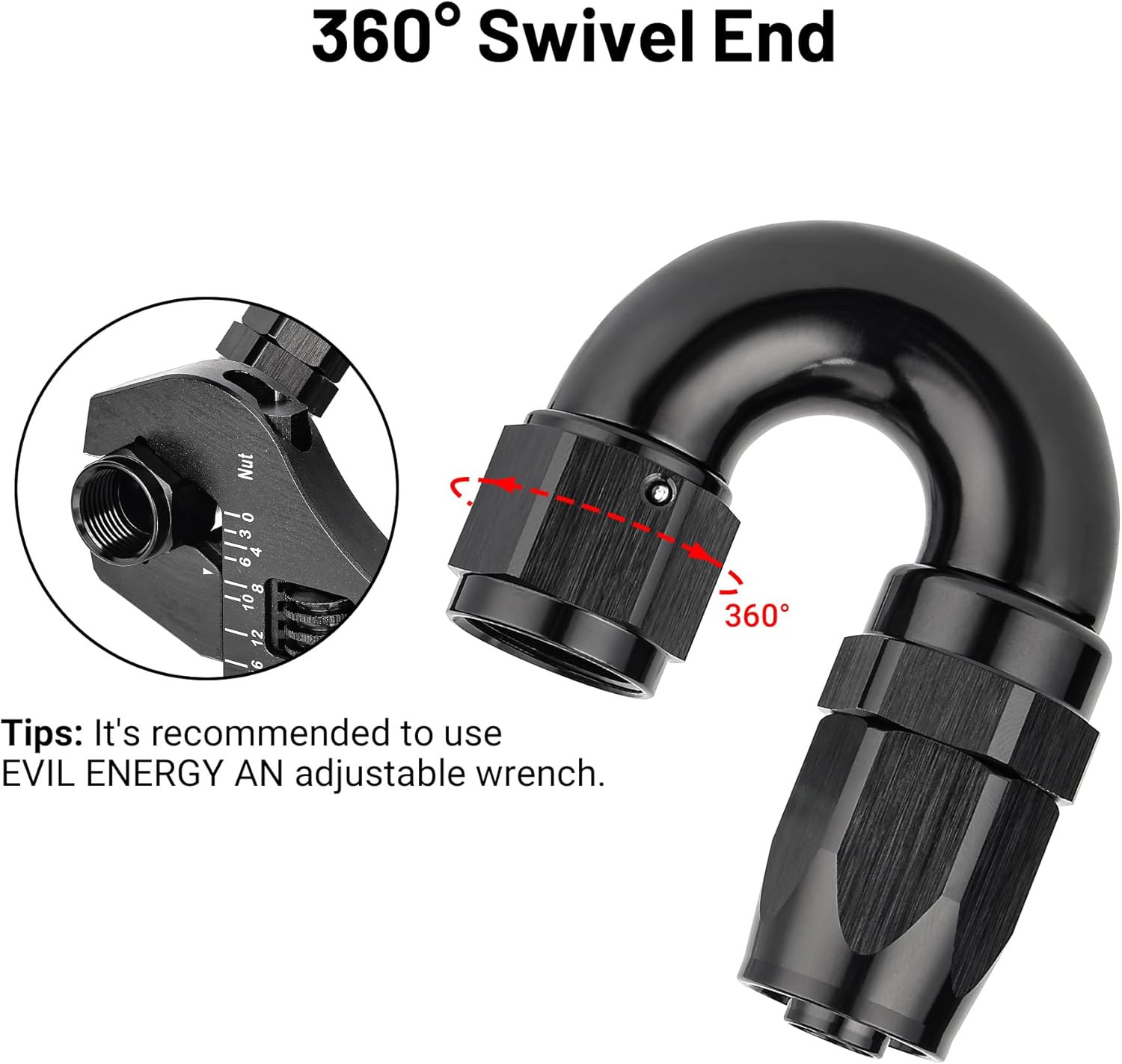 EVIL ENERGY 8AN 180 Degree One Piece Full Flow Hose End Fitting Swivel For CPE Braided Hose