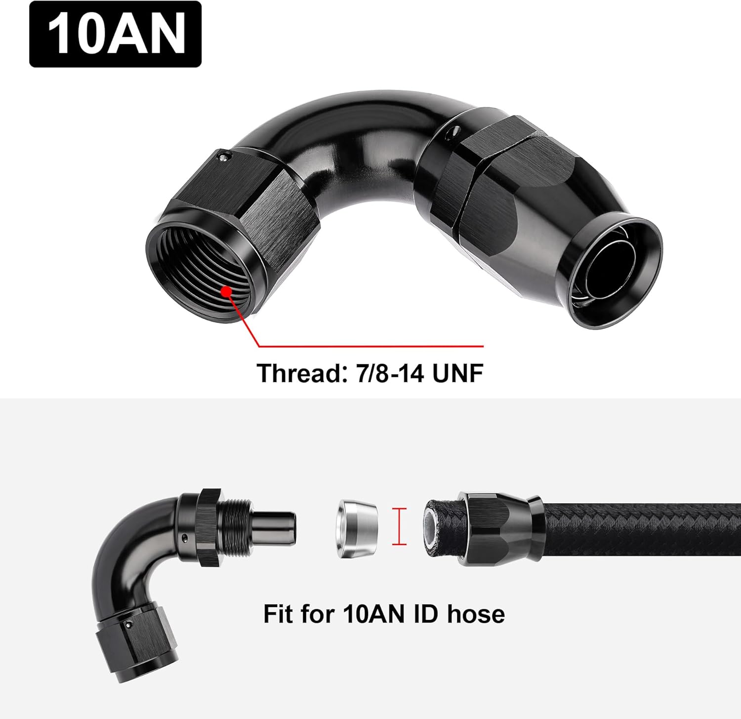 - [Product Size & Parameter] Size: 10AN. Thread Size: 7/8-14 UNF. Working Pressure: 1500PSI. Working Temperature Range: -40Β°F-250Β°F. Angle: 120 Degrees. Note: Please verify the hose size before purchase.