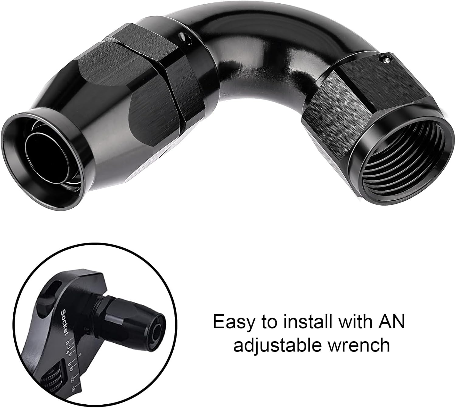 - [Application] These fittings are ONLY used with PTFE fuel lines for E85, alcohol, nitro, clutch, nitrous, power steering, oiling, hydraulics, and vacuum applications. A 360Β° swivel design allows for easy assembly.