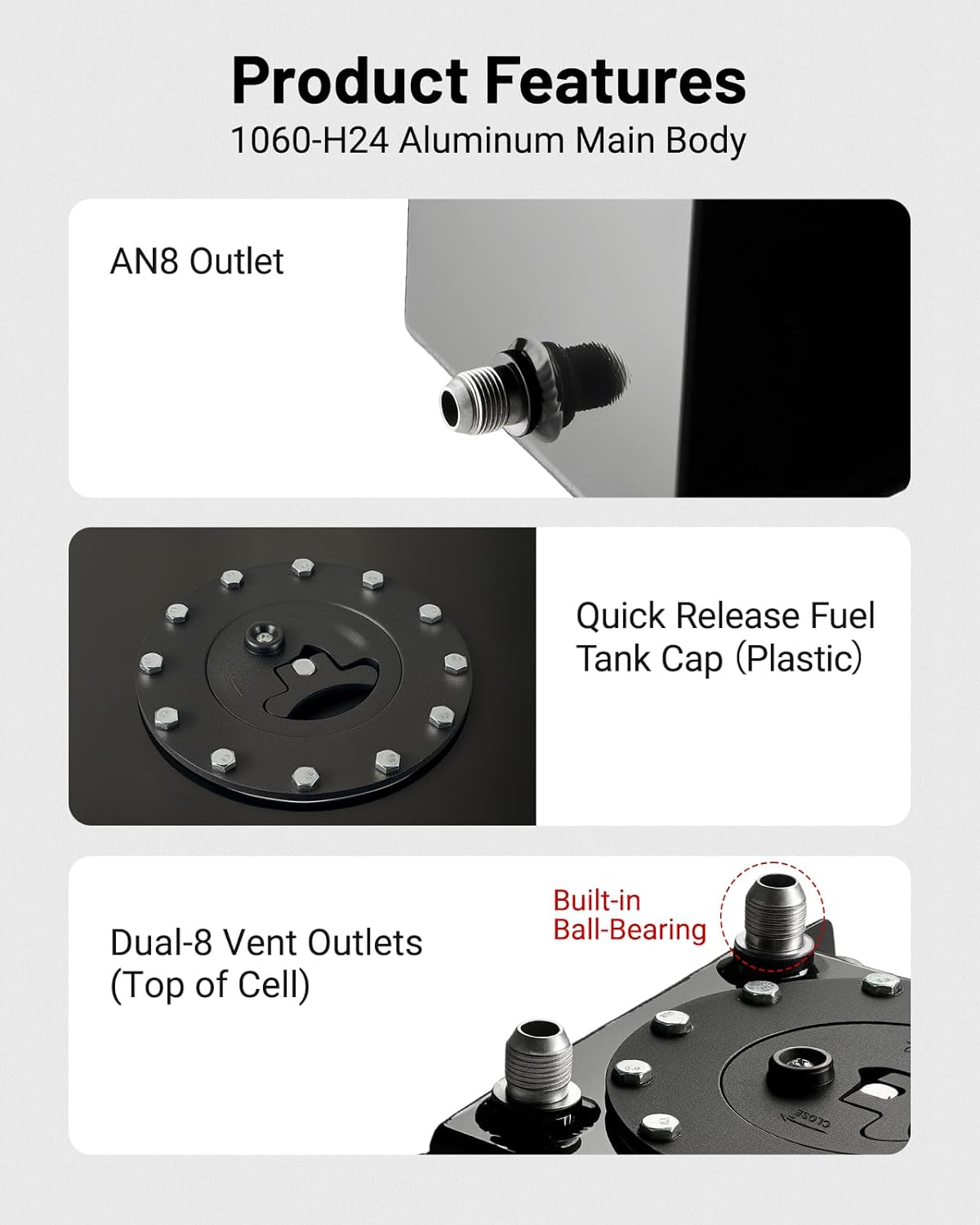 - Features: 1PC aluminum fuel cell includes anti-slosh foam,without level sensor,Built-in Ball-Bearing