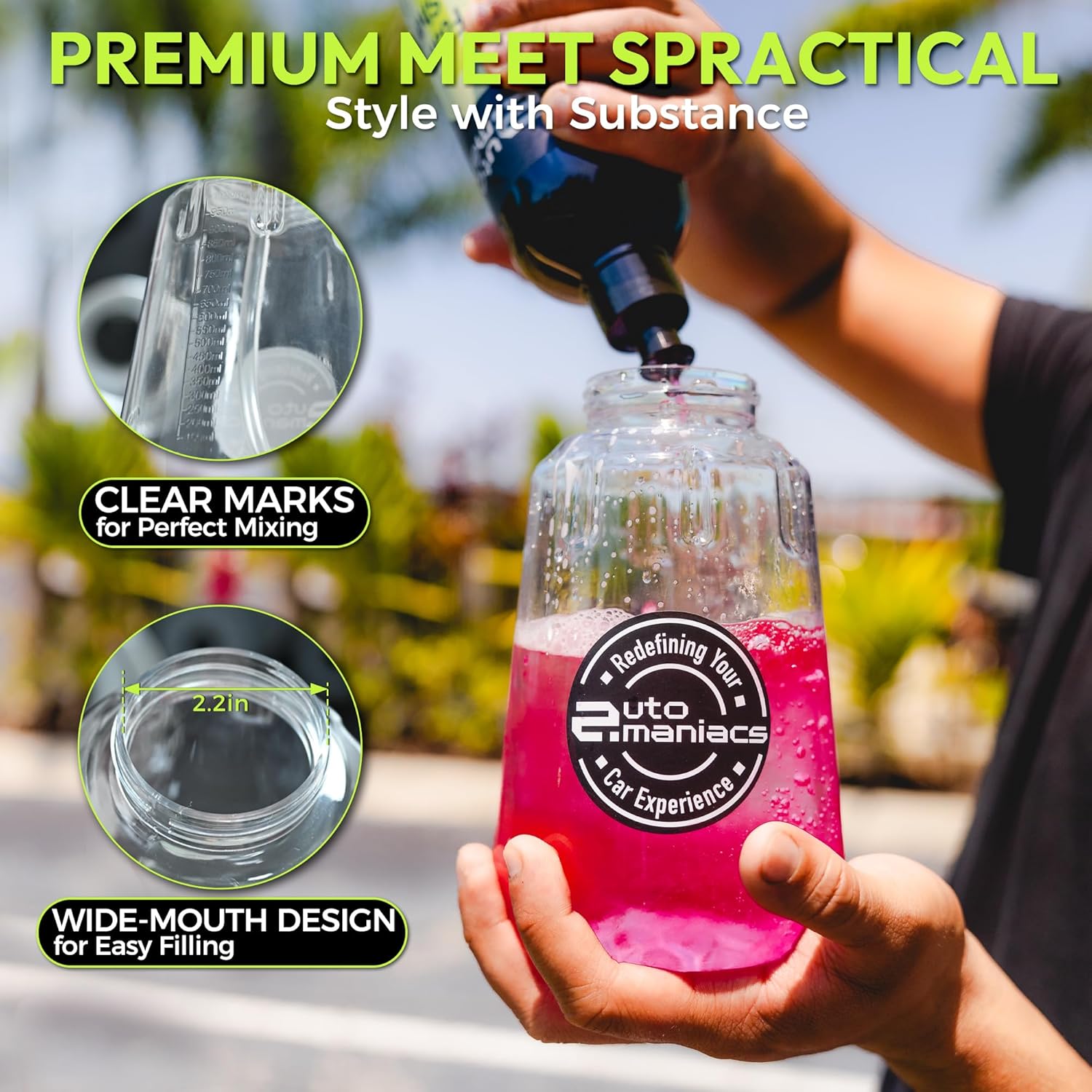 - ๐โจ ๐ฃ๐ฟ๐ผ-๐๐ฟ๐ฎ๐ฑ๐ฒ ๐ง๐ต๐ถ๐ฐ๐ธ ๐๐ผ๐ฎ๐บ--The AutoManiacs Car Wash Foam Cannon creates shaving cream-thick foam that clings to surfaces, dissolving dirt instantly. Built for pressure washers (500-4,000 PSI) with a 33.81 oz (1L) tank, it delivers non-stop foam coverage for deep, scratch-free cleaning. Perfect for DIYers and pros craving foam cannon car wash sprayer results.