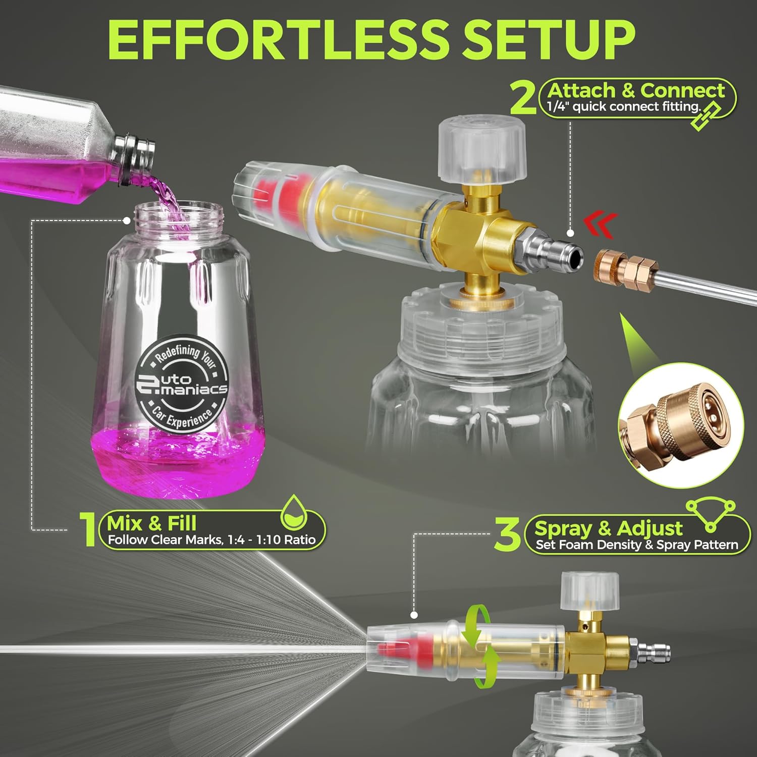 AutoManiacs Foam Cannon for Pressure Washer, Adjustable Car Wash Sprayer with 1/4 Inch Quick Connector, 1L Durable Snow Foam Blaster for Car & Truck Washing