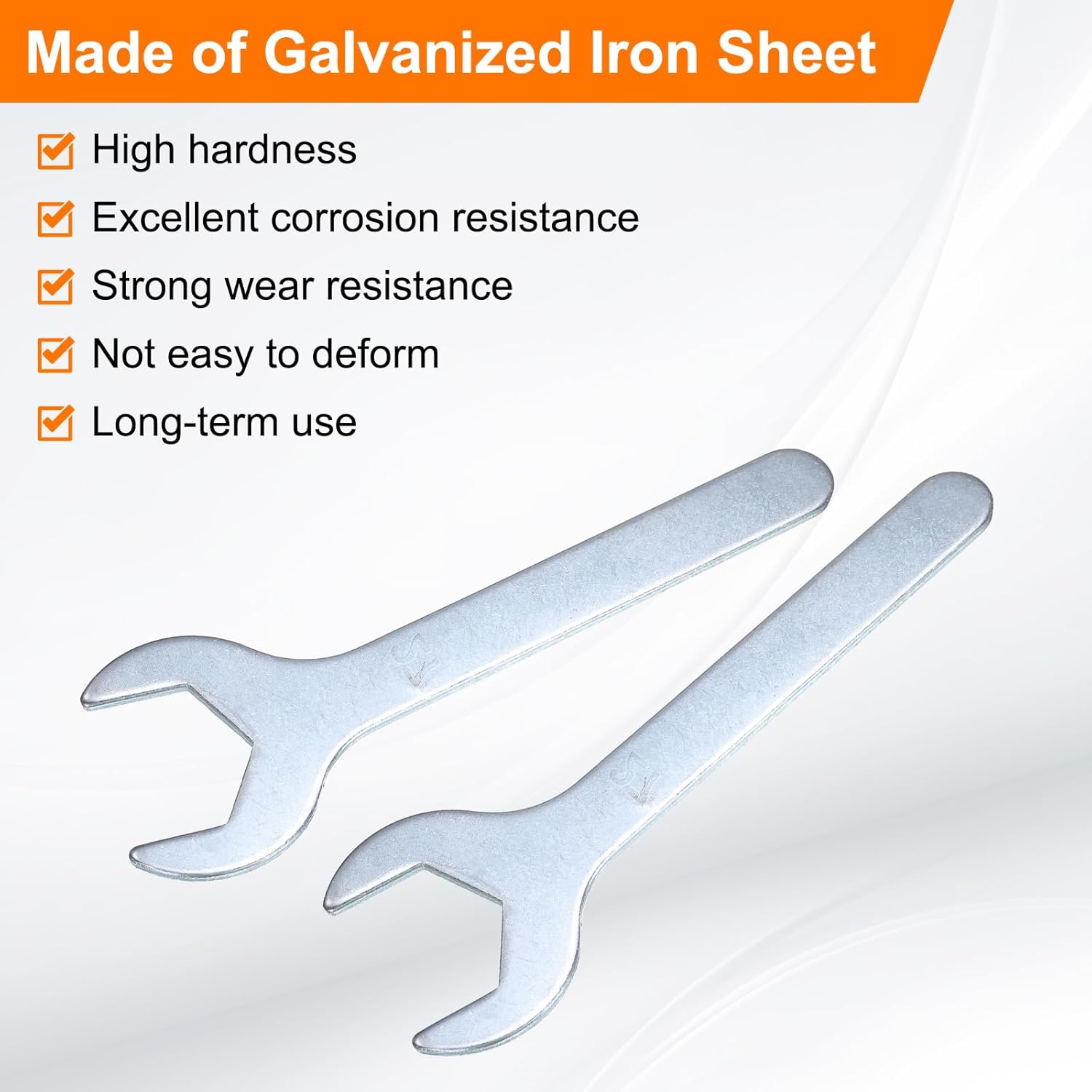- Long Lasting - Our single open-end wrench is made of an iron plate, which has high hardness and excellent corrosion resistance. The surface galvanizing improves its wear resistance, keeps its surface smooth and reduces wear, is not easy to deform, and can be used for a long time.
