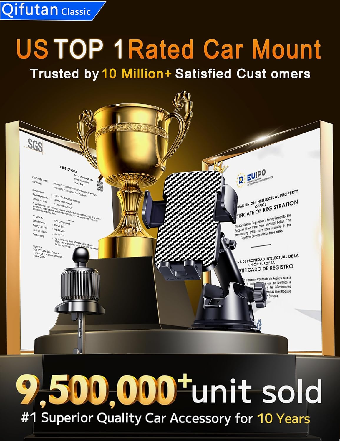 Qifutan Dash Mounted Holders Phone Holders for Your Car Phone Mount for Car Windshield Dashboard Air Vent Universal Hands Free Automobile Cell Phone Holder Fit for iPhone Smartphone