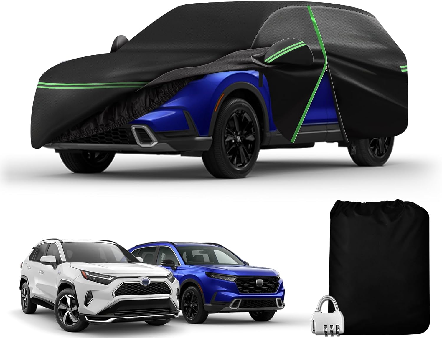 Car Cover for Honda CRV 1997-2025, Toyota RAV4 1996-2025, 210D Outdoor Waterproof UV Protection, Rain Sun Snow Protector with Cotton Layer, Zipper Door, Reflective Strip, Storage Bag