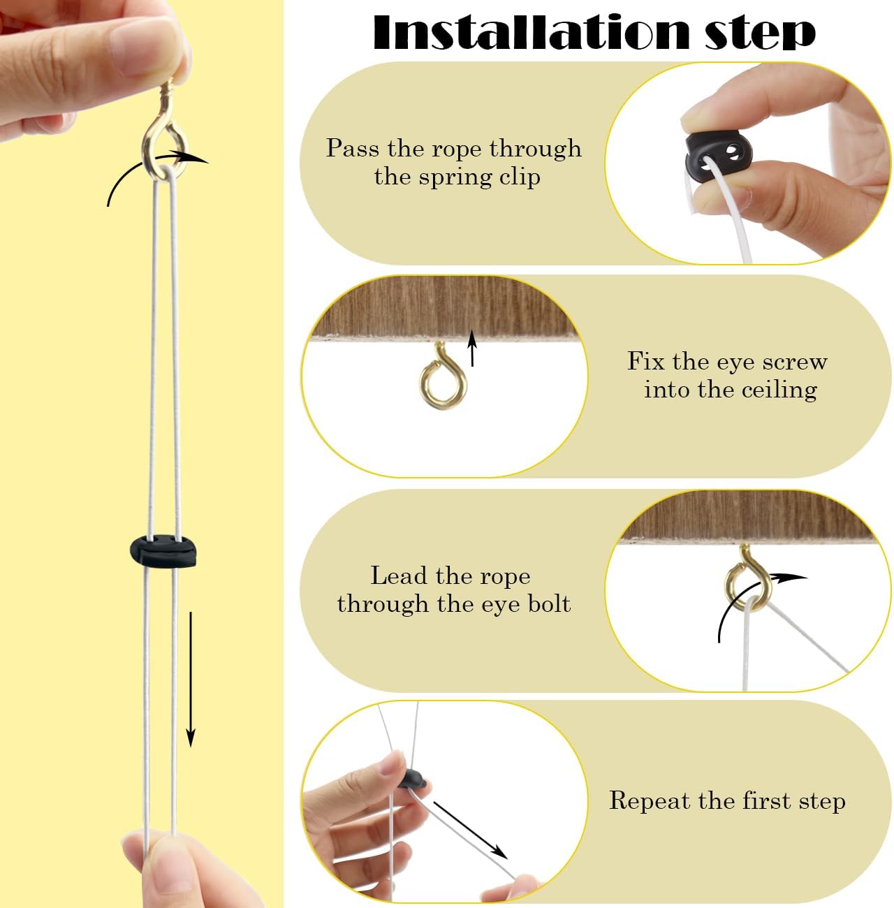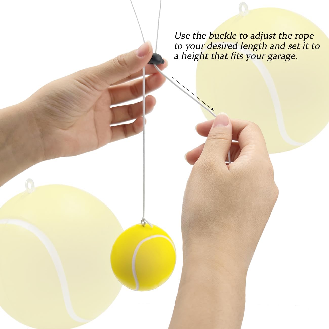 - Easy Installation: Installing this car parking aids for garage is a breeze.Simply thread the lanyard through the spring clip, secure the screws to the ceiling,and thread the lanyard through the screw eyes
